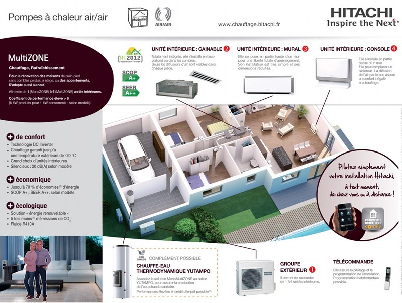 Spécialement développée pour le chauffage, la CONSOLE Hitachi assure performances, confort et économies tout en restant discrète.