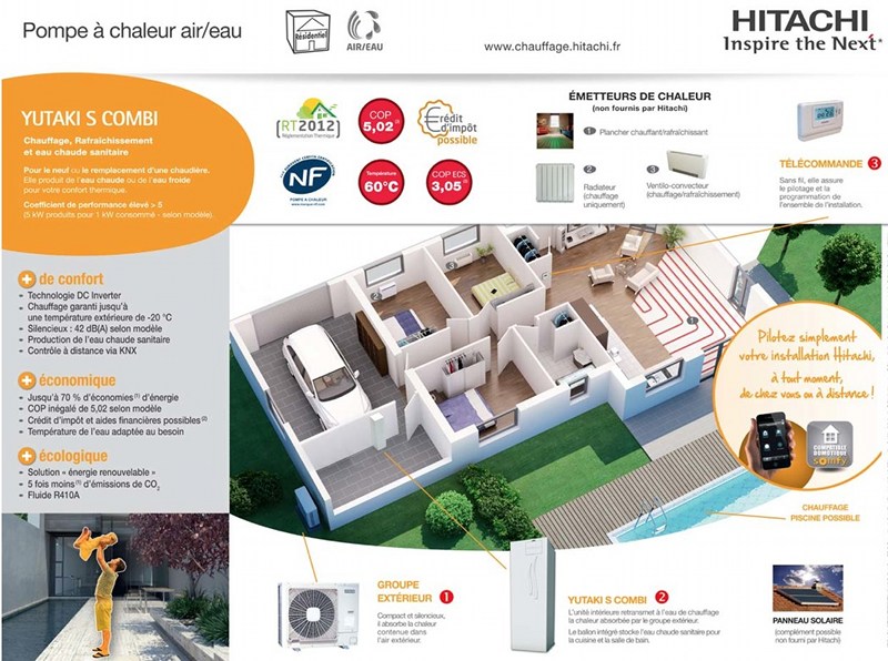 YUTAKI S COMBI (pompes à chaleur air / eau split) : Chauffage + Rafraîchissement + Eau Chaude Sanitaire